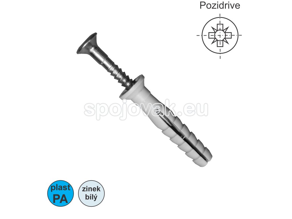 Hmoždinka pro použití do plných stavebních materiálů k upevňování latí, rámů, kovových profilů apod..