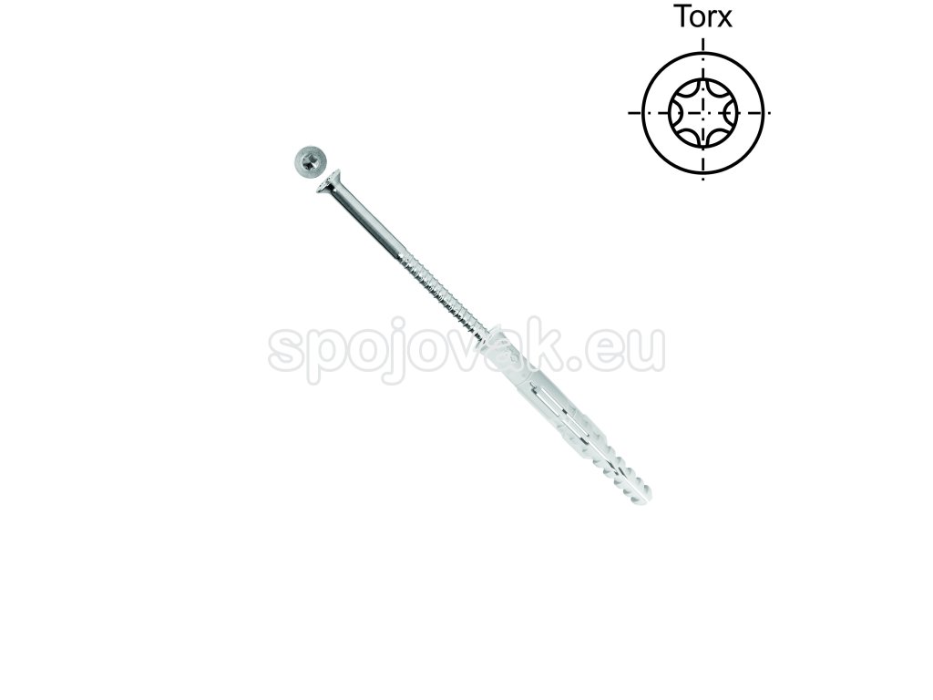 10 x 135; multifunkční rámová hmoždinka s vrutem se zapuštěnou hlavou MFR SB TX, materiál PP + ocel, povrchová úprava bílý zinek
