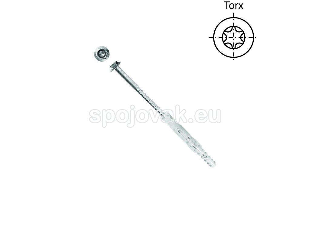 10 x 80; multifunkční rámová hmoždinka s vrutem se šestihrannou hlavou MFR SB SSKS, materiál PP + ocel, povrchová úprava bílý zinek