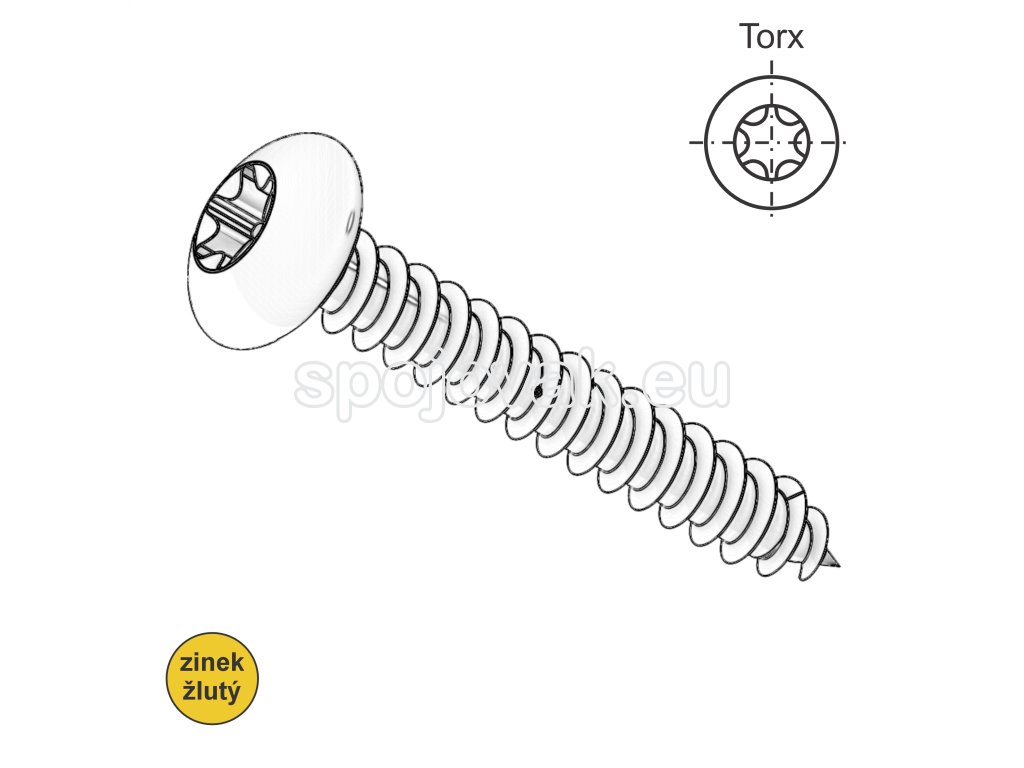 3,5 x 45; ocelový vrut univerzální, povrchová úprava zinek žlutý, půlkulatá hlava s drážkou Torx