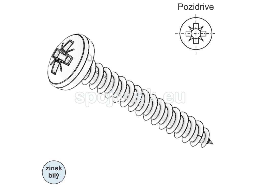 5 x 13; ocelový vrut univerzální, povrchová úprava bílý zinek, půlkulatá hlava s drážkou Pozidrive