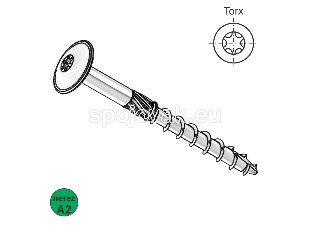 8 x 140; konstrukční vrut, talířová hlava, materiál nerez A2