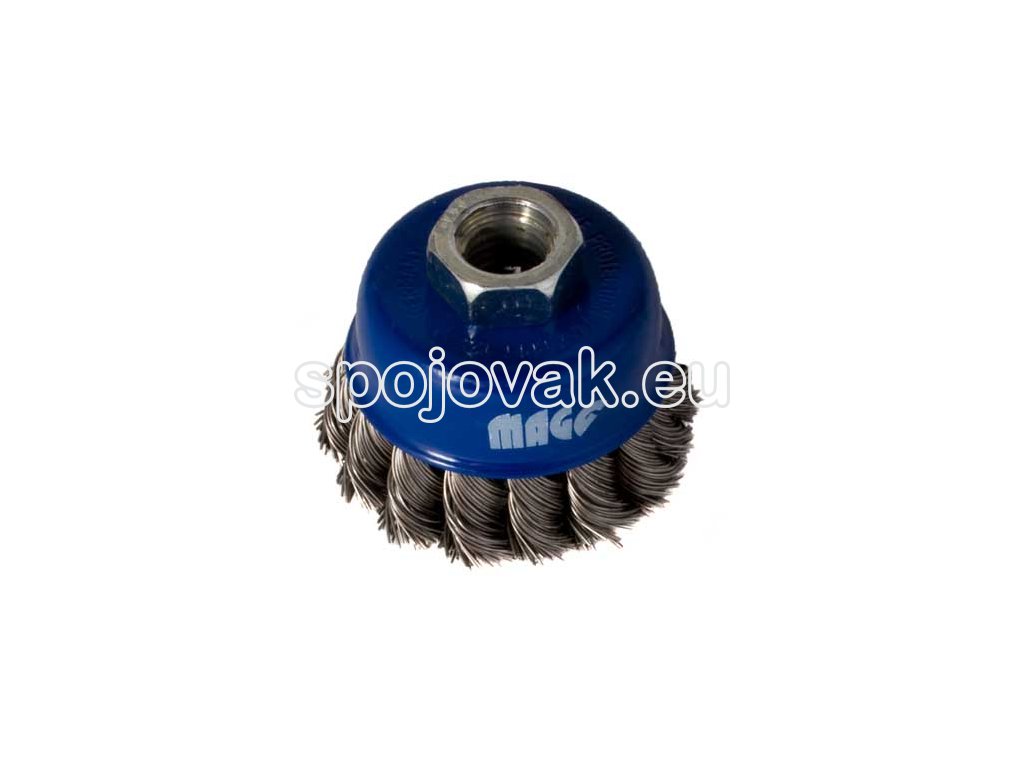 Kartáč hrnkový ø 80, copánkový SS 0,50, závit M14x2 - NEREZ