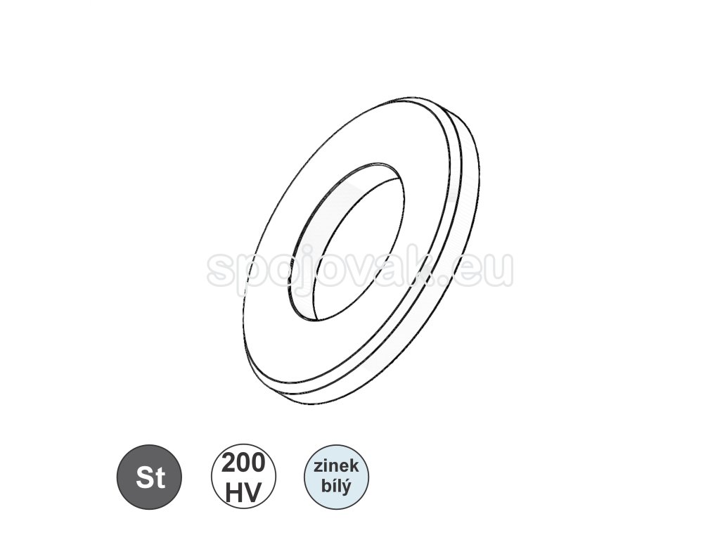 Ocelová podložka plochá, 200HV s povrchovou úpravou v bílém zinku, DIN 125B