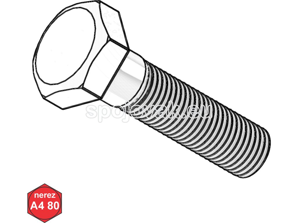 Metrický šroub se šestihrannou hlavou a částečným závitem, z nerezavějící oceli A4-80.