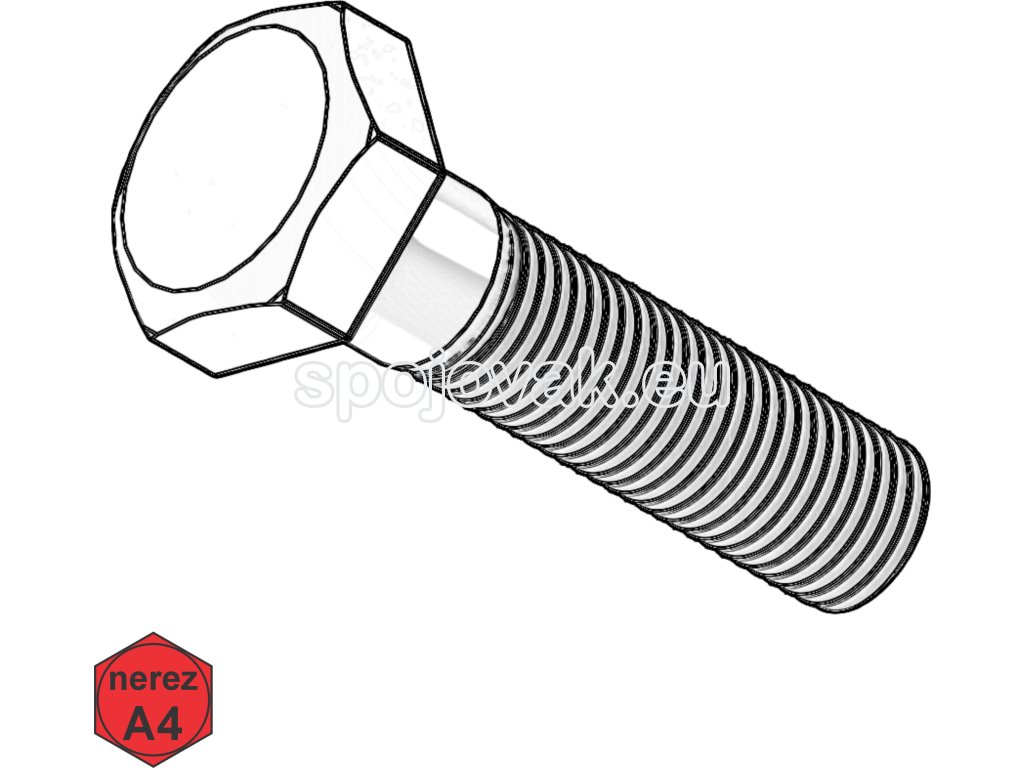 Metrický šroub se šestihrannou hlavou a částečným závitem, z nerezavějící oceli A4.