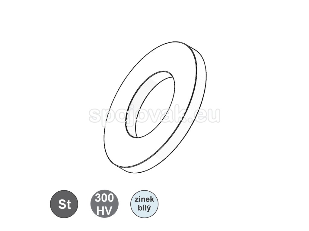 Ocelová podložka plochá, 300HV s povrchovou úpravou v bílém zinku, DIN 125A