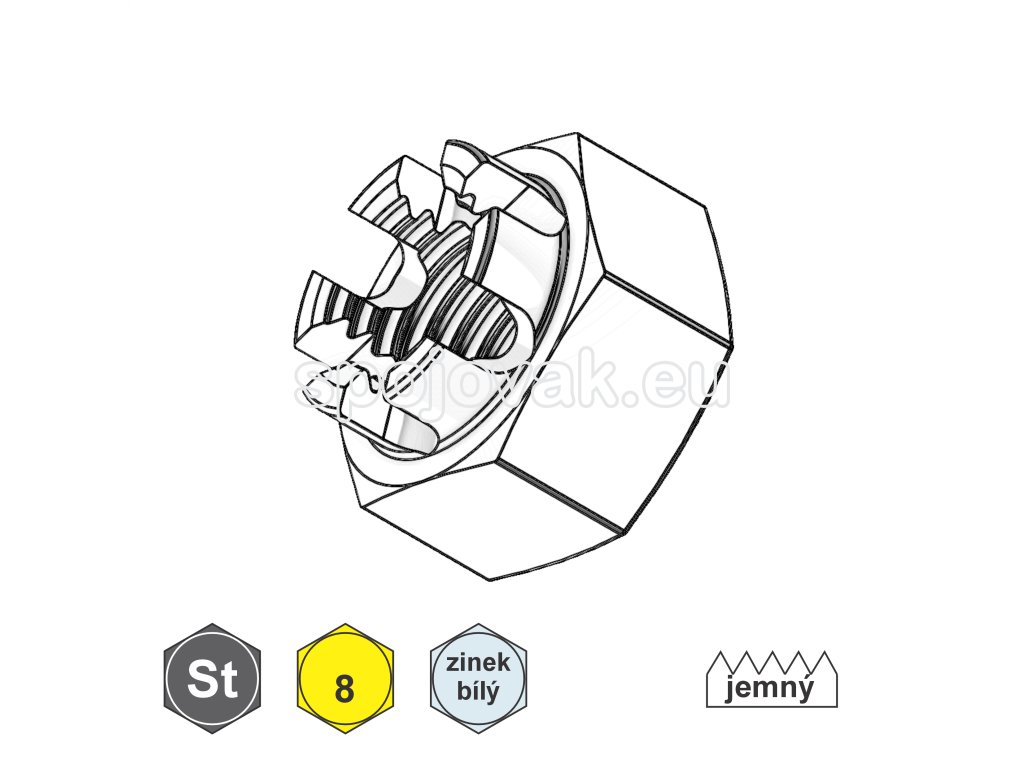 M 33 x 2; DIN 935, ocel tř. 8, korunková matice, jemný závit