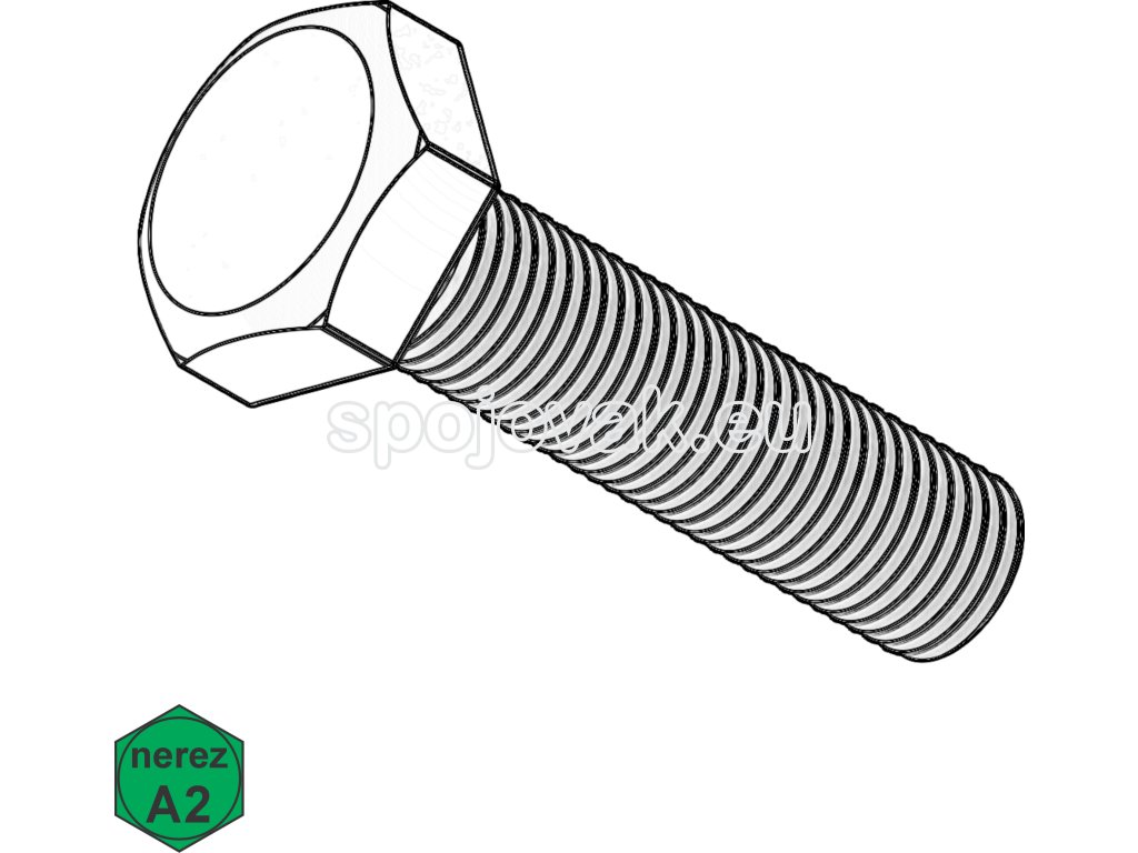 Metrický šroub se šestihrannou hlavou a celým závitem z nerezavějící oceli A2.