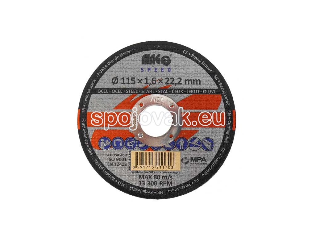 Řezný kotouč na kov ; ø 115 x 1,6 x ø 22,2mm MAGG SPEED