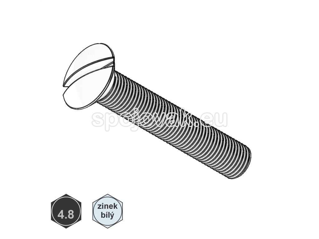 Metrický šroub s čočkovou hlavou a plochou drážkou, materiál ocel 4.8, s povrchovou úpravou bílý zinek; M 5 x 16
