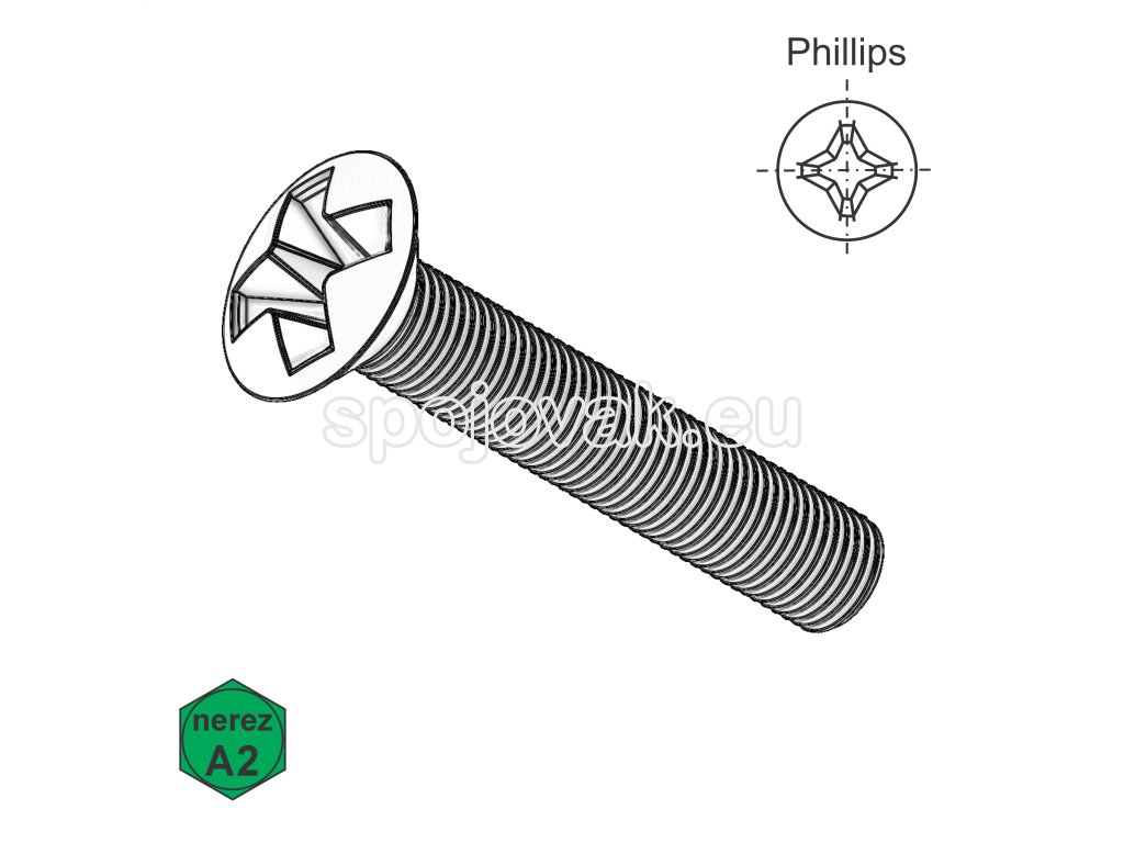 Metrický šroub s čočkovou hlavou a křížovou drážkou Phillips, materiál nerez A2; M 5 x 16