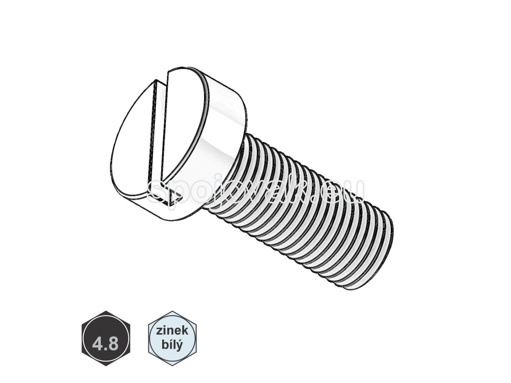 Metrický šroub s válcovou hlavou a plochou drážkou, materiál ocel 4.8, s povrchovou úpravou bílý zinek; M 6 x 60